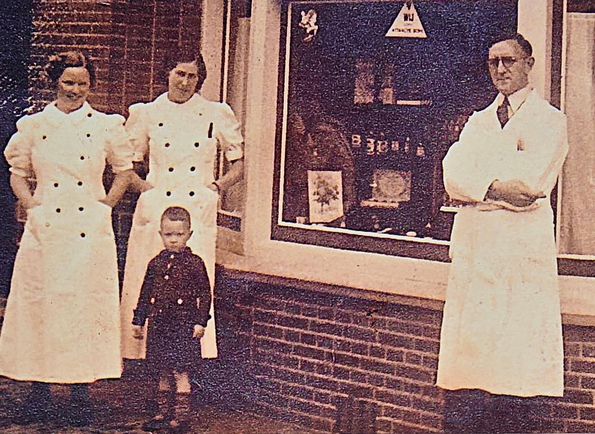 Hier tijdens de optocht ter ere van de bevrijding van de tweede wereldoorlog te Gorredijk Hierboven de kapsalon van mijn ouders met mijn vader, moeder,hulp en ik.